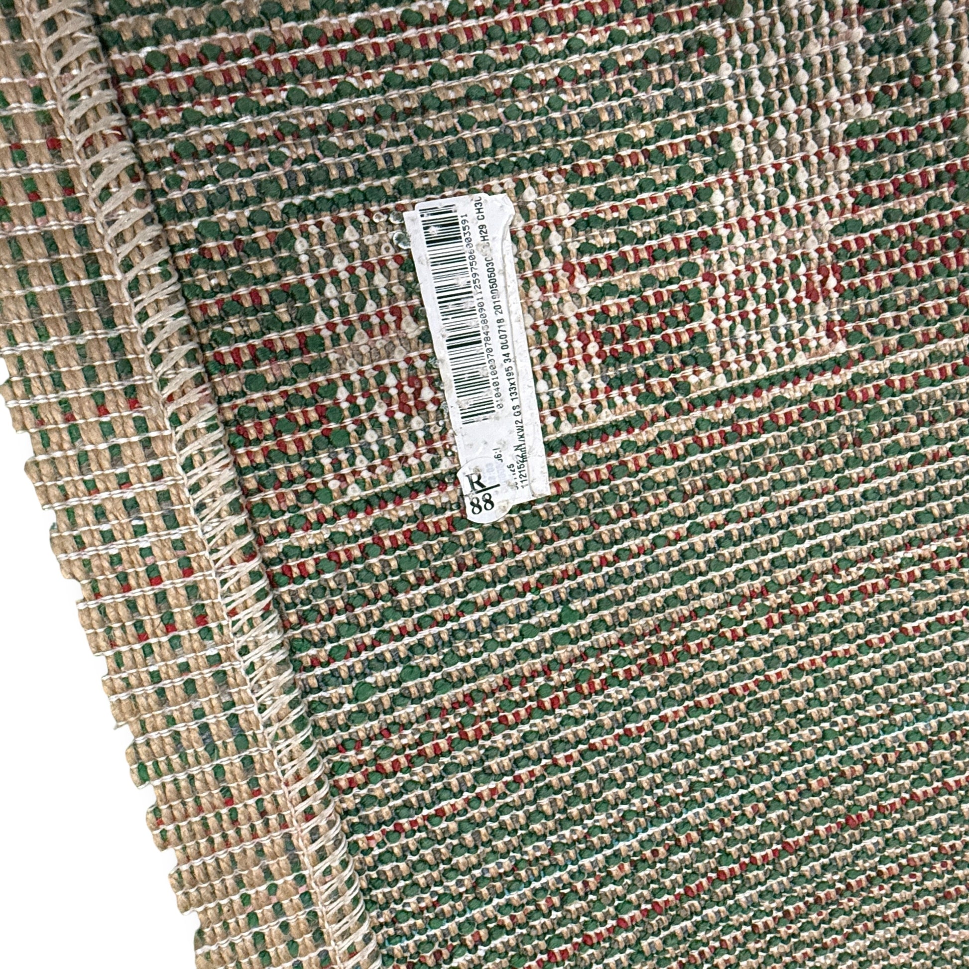 Elevate your interior aesthetic with this coveted OFF-WHITE X IKEA "WET GRASS" rug. A testament to Virgil Abloh's boundary-pushing design, this preloved statement piece maintains its pristine condition with no flaws or significant wear. The iconic quotation marks and vibrant green hue transform an ordinary floor covering into a conversation-starting art installation for the discerning collector.